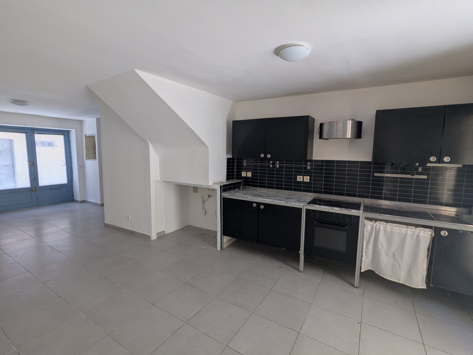 Maison d'habitation T4 de 85 m² en R+1 avec cour et garage. En RDC, un séjour avec cuisine ouverte et espace salon. Climatisation. Accès au garage par l'intérieur de la maison. Petite cour. A l'étage, 3 grandes chambres et une salle de bain. WC séparé. radiateurs électriques neufs. garage étroit !