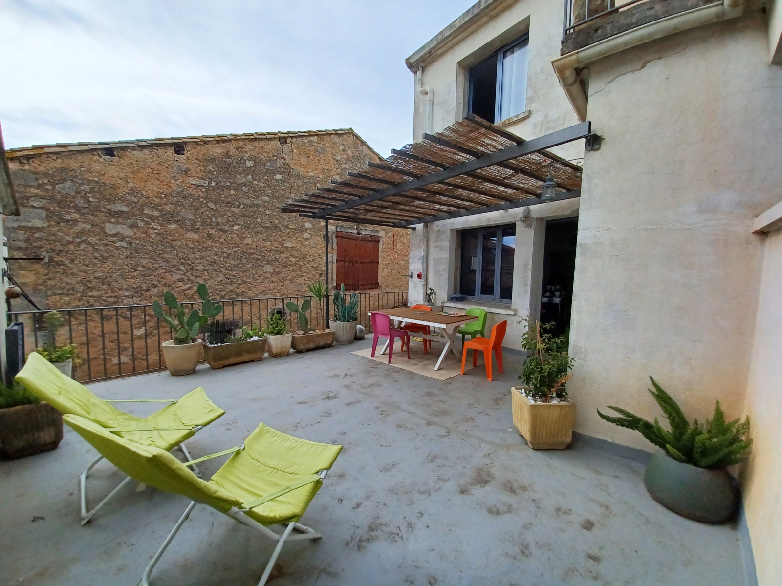 Située à Villeneuve-lès-Béziers, cette charmante maison bénéficie d'un emplacement idéal au cœur du village, offrant ainsi un cadre de vie paisible. Proche des commerces et du canal du midi. Cette maison comprend un double garage et deux terrasses, offrant des espaces extérieurs agréables. Avec trois places de parking, elle garantit une praticité appréciable. D'une surface habitable de 144 m², cette maison R+1 offre un agencement pratique et confortable. Au RDC une entrée avec un bel escalier. Au 1er, un couloir qui dessert un salon lumineux, une cuisine donnant sur une première terrasse, ainsi qu'une salle de bain avec WC. À l'étage, trois chambres, dont une ouvrant sur la seconde terrasse, et un WC viennent compléter l'intérieur. Dotée de nombreux rangements, cette maison chauffée aux granulés assure un cadre de vie chaleureux et fonctionnel. À noter que le DPE doit être refait suite au remplacement de toutes les fenêtres et portes-fenêtres par du double vitrage.