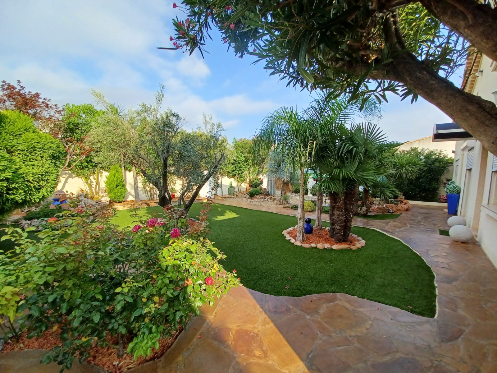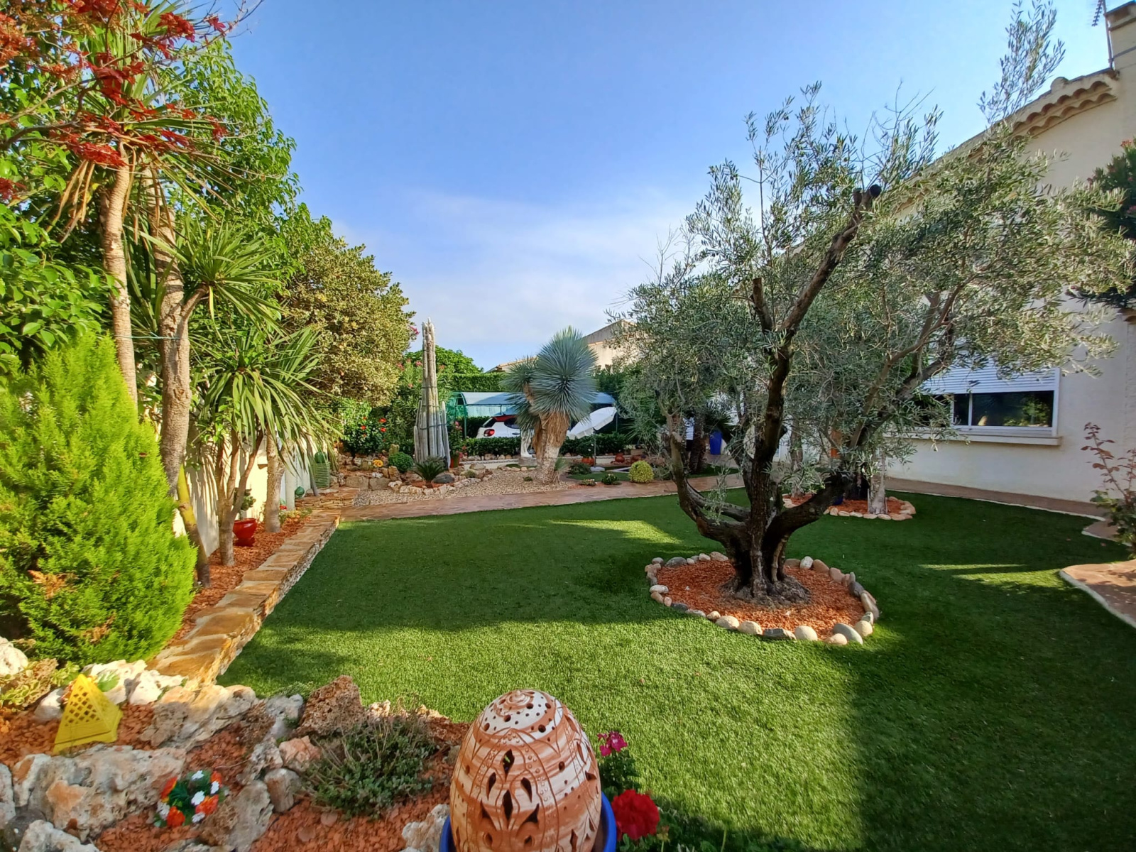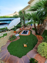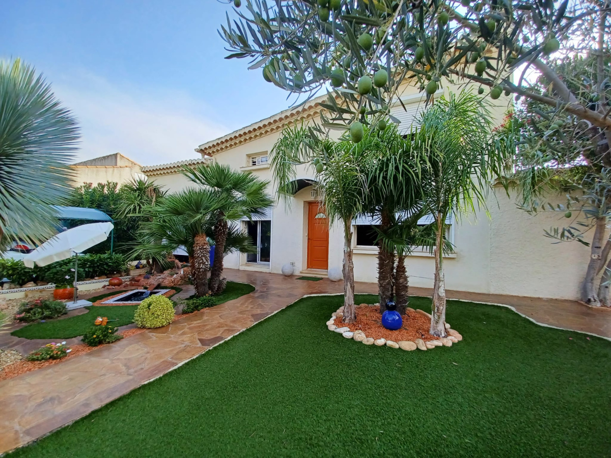 Superbe maison de 140 m² habitable, parfaitement entretenue, composée de 5 pièces principales, séjour "cathédrale", 3 chambres, bureau, salle de bain, salle d'eau, WC. Magnifique jardin paysagé, garage, climatisation, quartier résidentiel au calme